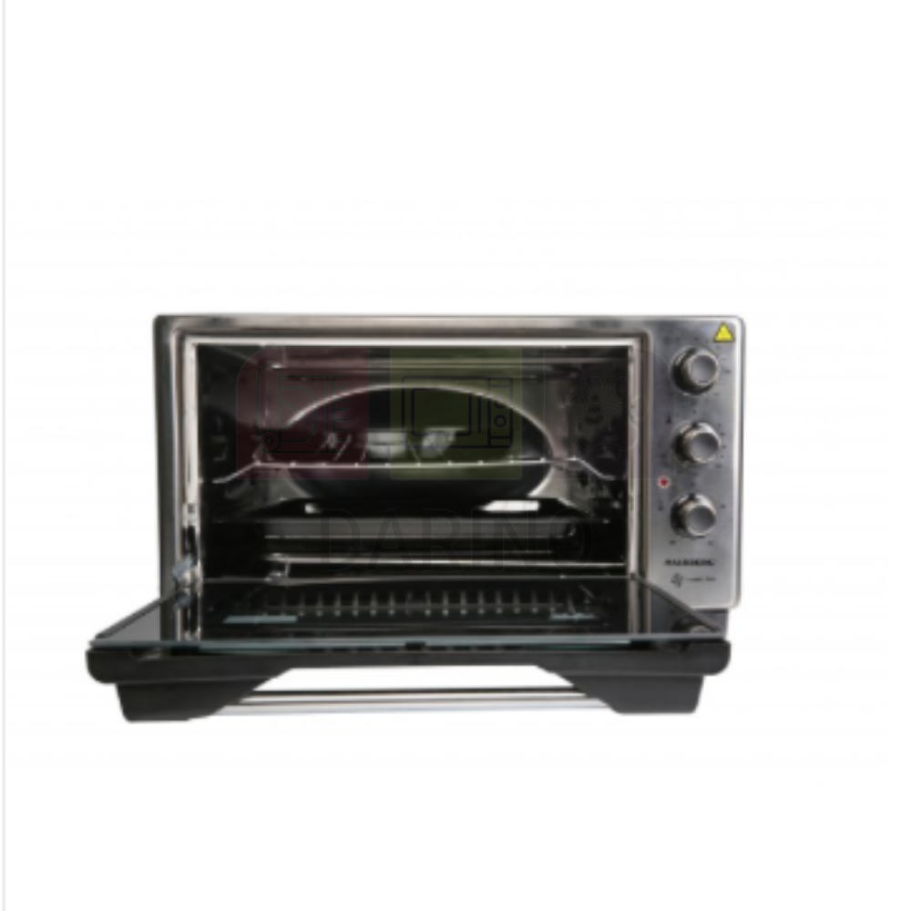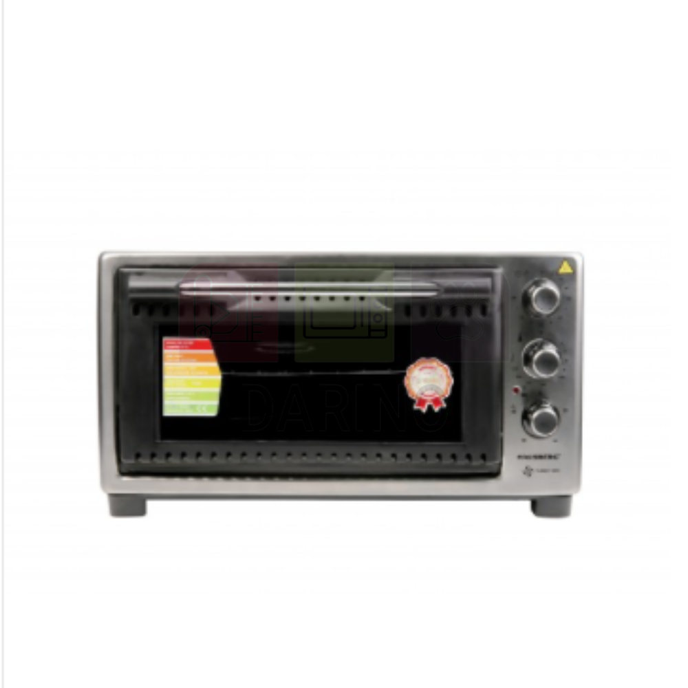 Discover our electric midi oven with fan. Special double glazing, turbo fan up to 320°C. Mechanical timer, reinforced insulation. Equipped with enamel, square and round top, adjustable steel grid. Tempered glass, durable resistance. Power supply 220-240V, 50/60Hz, 1450-1700W.